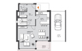 Flur 9,60 m² Kind 1 13,26 m² Kind 2 13,26 m² Schlafen 13,42 m² Bad 8,99 m² Terrasse 6,4 m² |